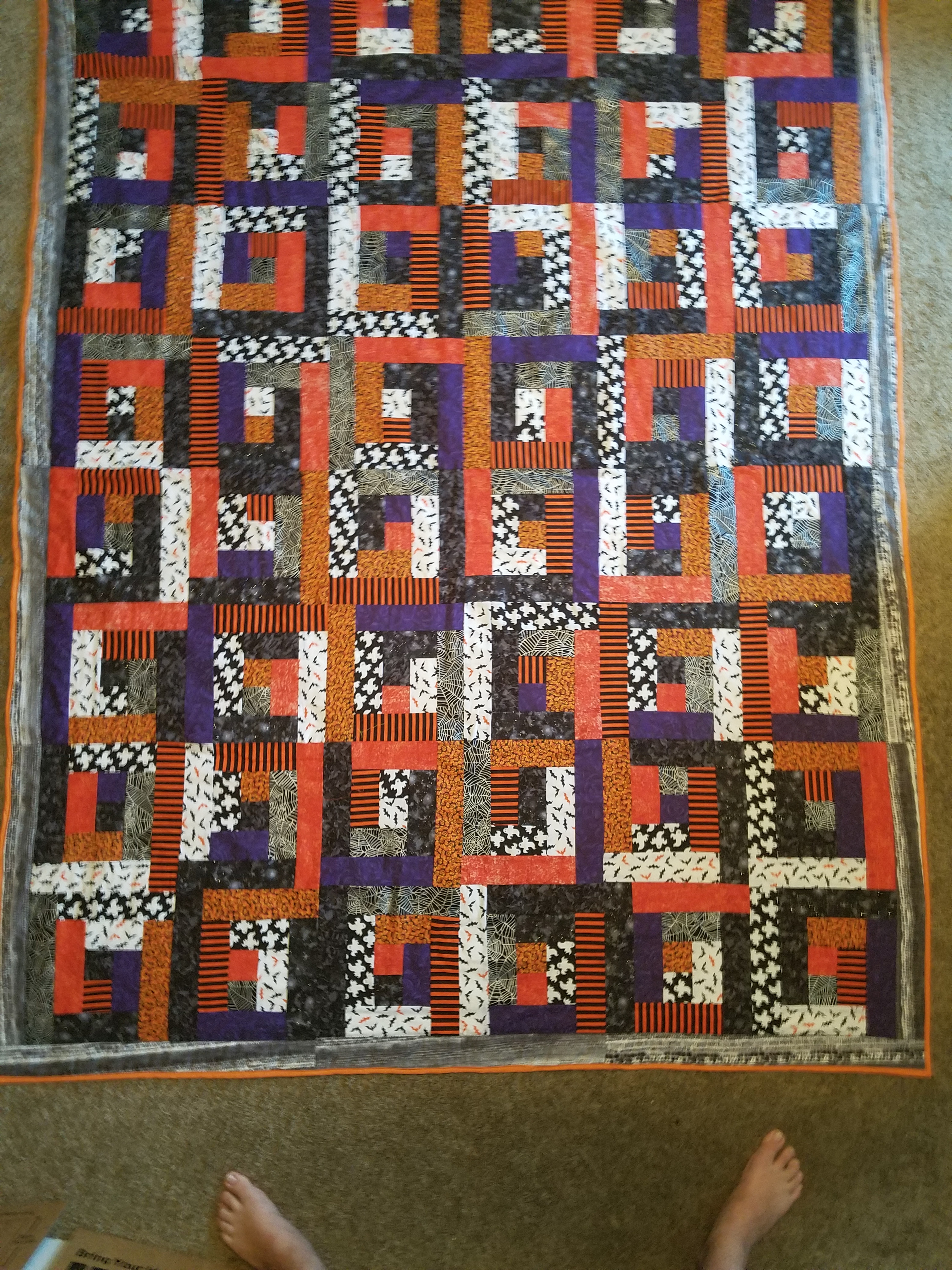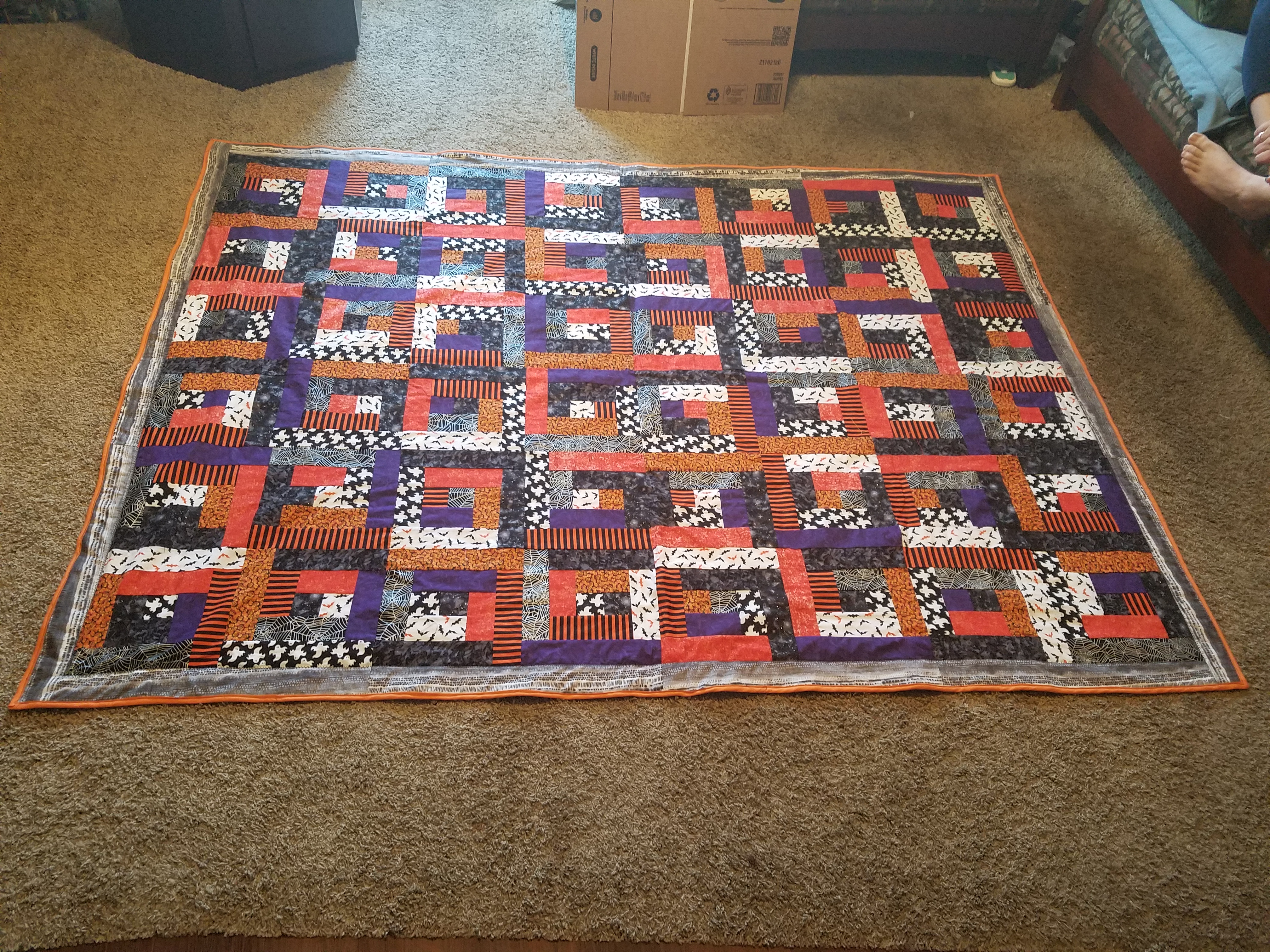 In order to make sure I had enough time to finish it along with my crazy life, I started it in April. Let me tell you, buying Halloween fabric in April gets weird looks from people at the fabric store. They were all surprised that that’s what I wanted at that time. But I didn’t let it deter me. Halloween was the perfect theme for my friend’s quilt and I was going to make it beautiful.